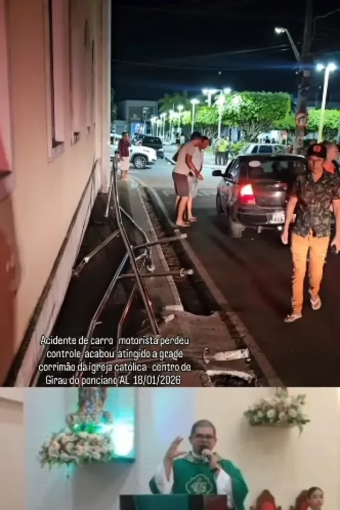 Um acidente de trânsito registrado na noite deste domingo (18) causou correria e pânico durante a celebração de uma missa em uma igreja localizada no centro de Girau do Ponciano, no Agreste de Alagoas.