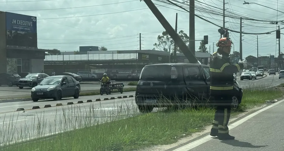 Equipes do Corpo de Bombeiros e do DMTT foram acionadas, e o motorista já havia saído do carro. Seu estado de saúde não foi divulgado.
