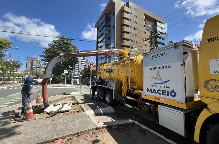 A Secretaria Municipal de Infraestrutura (Seminfra) realizou, nesta segunda-feira (12), uma ação preventiva de limpeza, manutenção e desobstrução da rede de drenagem da Avenida Sandoval Arroxelas, no bairro Ponta Verde. A ação tem como objetivo melhorar o escoamento da água da chuva e evitar alagamentos, especialmente durante o período chuvoso.