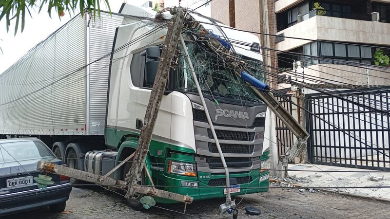 Um caminhão derrubou um poste ao arrastar a fiação na manhã desta quarta-feira (28) na Avenida Doutor José Sampaio Luz, bairro Ponta Verde, em Maceió.