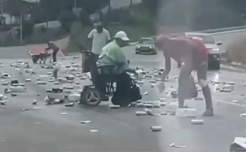 Uma carga de cerveja zero álcool caiu de um caminhão na BR-101, próximo ao município de Messias, no interior de Alagoas, nesta terça-feira (10). As latas se espalharam pela pista e foram rapidamente saqueadas por moradores da região antes da chegada das autoridades.