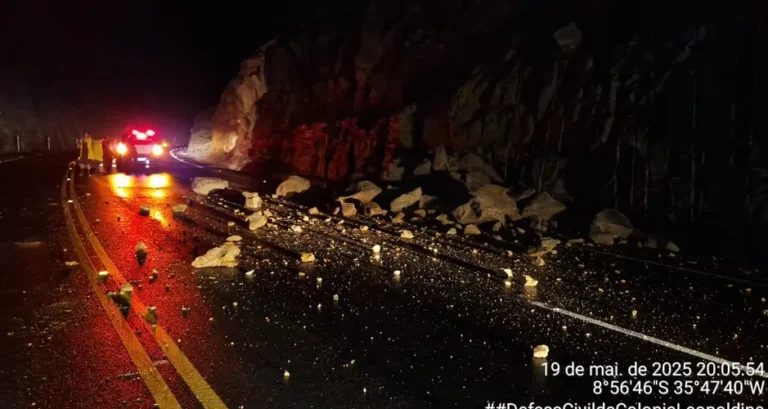 Vídeo mostra rodovia interditada após deslizamento de barreira no Pilar
