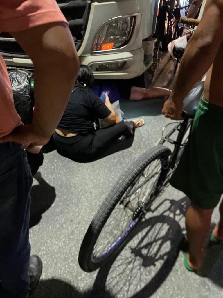 Uma ciclista sofreu um acidente na tarde de segunda-feira (27) na Avenida Menino Marcelo, em Maceió, e ficou presa sob uma carreta na região do viaduto da antiga PRF. Com o impacto, a perna esquerda da vítima foi atingida, levantando suspeita de fratura.