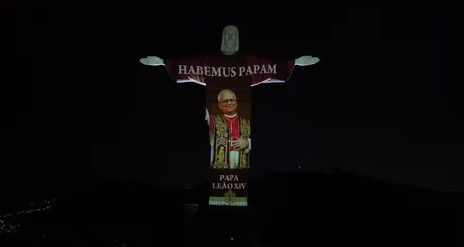 Cristo Redentor exibe imagem do papa Leão XIV