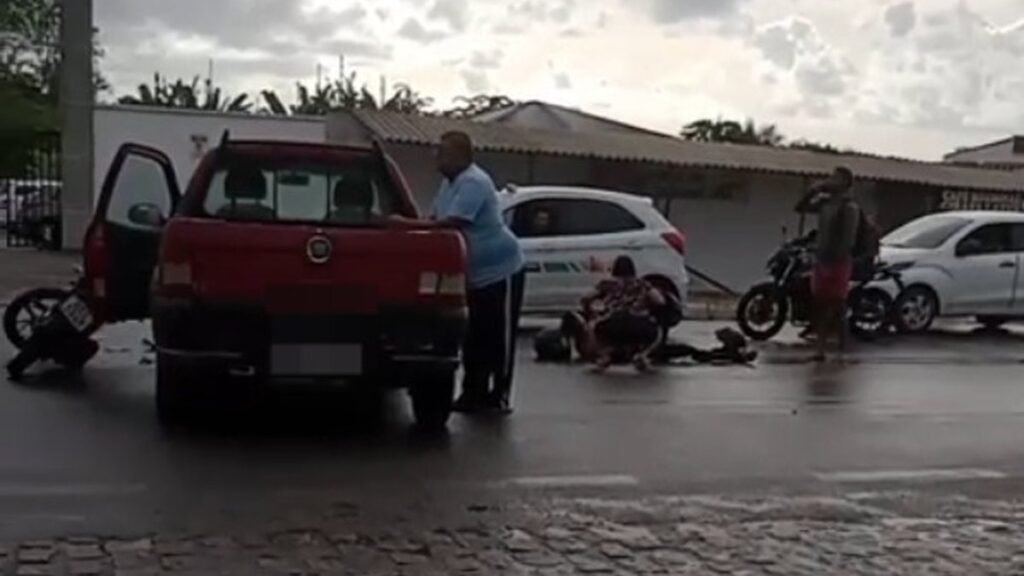 Dois homens ficaram feridos na manhã desta segunda-feira (7), após um acidente de trânsito envolvendo um carro e uma motocicleta na Avenida Jorge Barros Montenegro, principal via do bairro Santa Amélia, parte alta de Maceió.