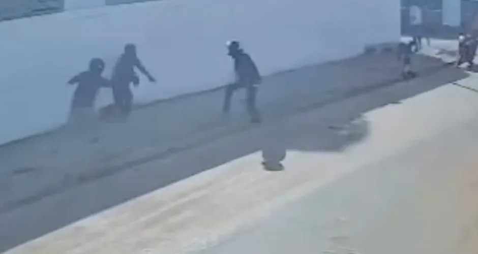 Câmeras de segurança registraram o momento em que dois homens armados, em uma motocicleta, abordaram a vítima de forma agressiva e roubaram R$ 40 mil em espécie.