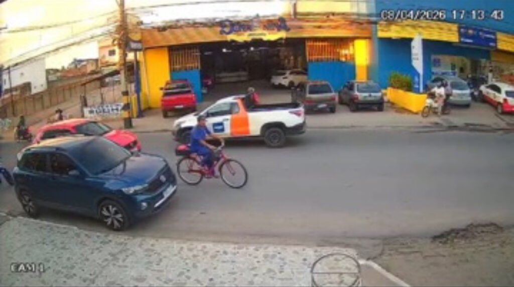 Imagens de câmeras de videomonitoramento registraram o momento em que ele é atingido por um carro e arremessado para debaixo de um caminhão.