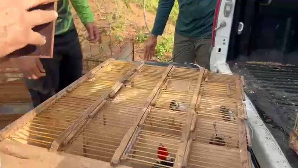 Foram apreendidas espécies como curió, papa-capim, galo-de-campina, canário-da-terra e trinca-ferro. Parte dos animais foi encontrada na residência de um dos suspeitos.