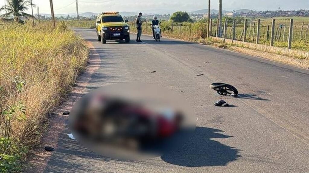 O corpo foi encontrado ao lado da motocicleta destruída, com peças espalhadas pela pista.