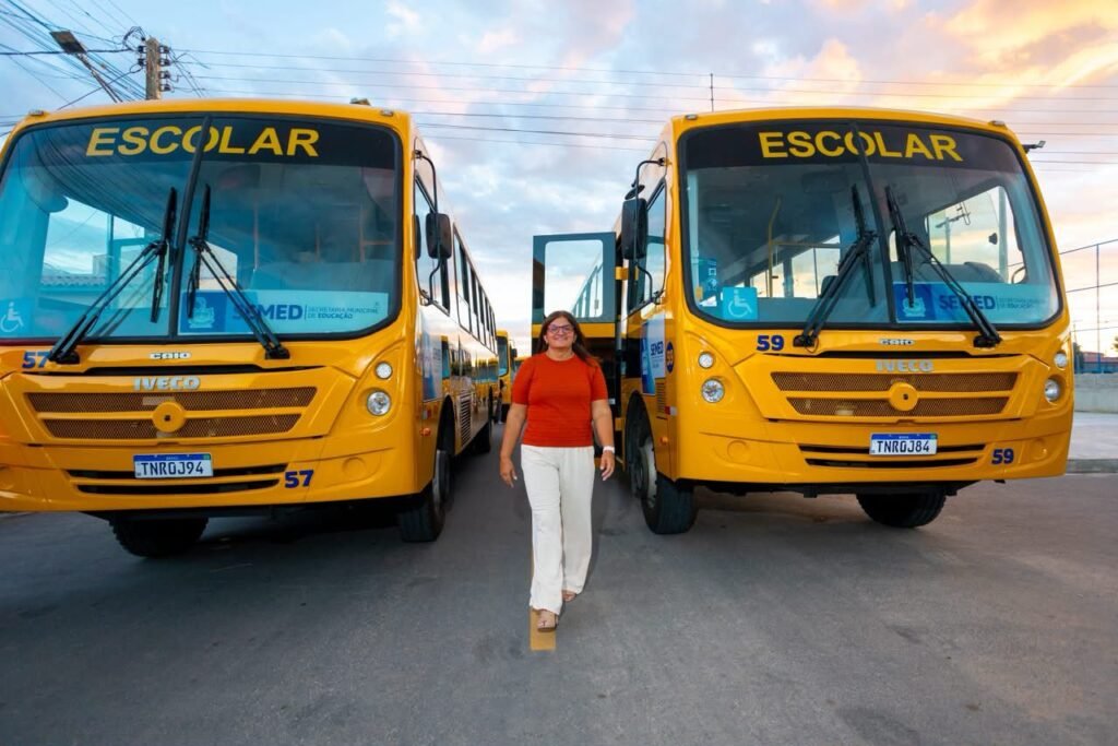O ponto alto do evento foi a apresentação dos 14 novos ônibus escolares. Os veículos, modernos e padronizados, já começam a circular para garantir que os estudantes tenham um transporte seguro, confortável e digno no trajeto entre suas casas e as unidades de ensino.