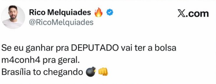 O influenciador Rico Melquiades afirmou que, caso seja eleito deputado federal, pretende criar a chamada “Bolsa maconha”, proposta que rapidamente repercutiu nas redes sociais. A declaração ocorreu após o anúncio de sua pré-candidatura em Alagoas.