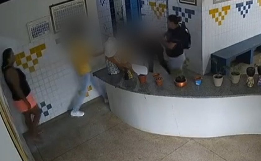 Uma servidora pública da rede estadual foi agredida por duas mulheres dentro da Escola Estadual Cônego Bulhões, em Dois Riachos, no Sertão de Alagoas. A agressão ocorreu em 27 de junho, mas as imagens da câmera de segurança só foram divulgadas recentemente. A vítima recebeu empurrões, chutes e tapas. Outras pessoas tentaram intervir.