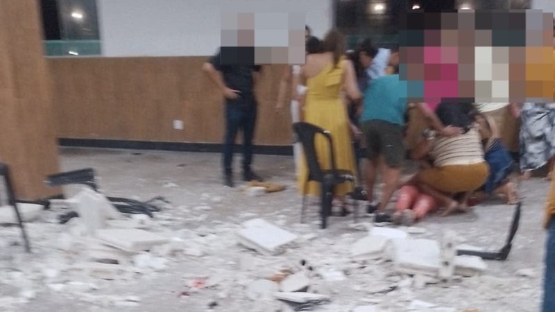 O teto do Clube dos Sargentos, no bairro do Prado, em Maceió, desabou durante um casamento na noite de sábado (24), deixando convidados feridos, incluindo familiares da noiva.